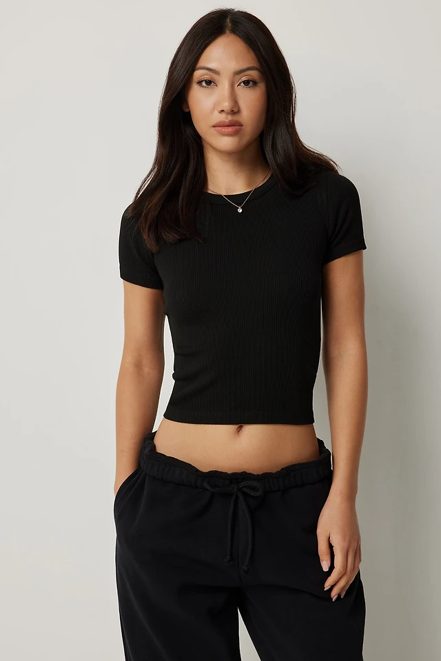 Ardene Contour Crew Neck Short Sleeve T-Shirt in Black | Size | Elastane/Polyamide