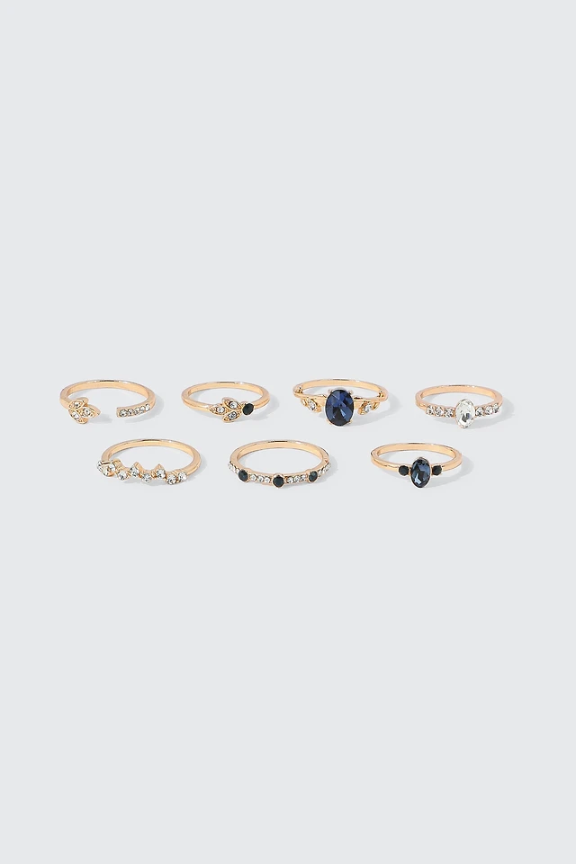 Ardene 7-Pack Rings with Sapphire-Style Stones in Gold | Size Small