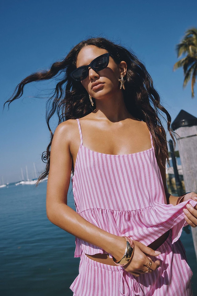 Ardene Open Back Babydoll Tiered Tank in Beige | Size | Polyester/Spandex