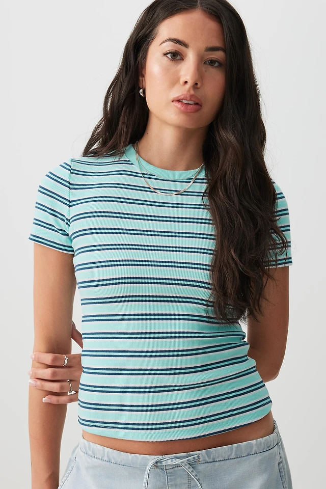 Ardene Short Fitted Crew Neck T-Shirt in Light Blue | Size | Cotton/Elastane