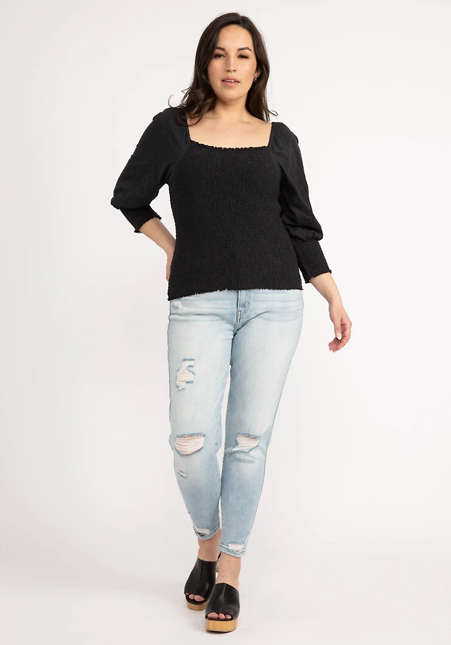 priscilla smocked 3/4 sleeve top