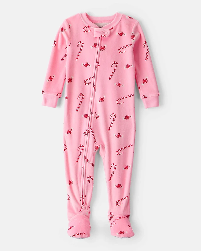 Baby Girl Peppermint Print Velour Long-Sleeve Loose Fit 1-Piece pyjamas - Pink
