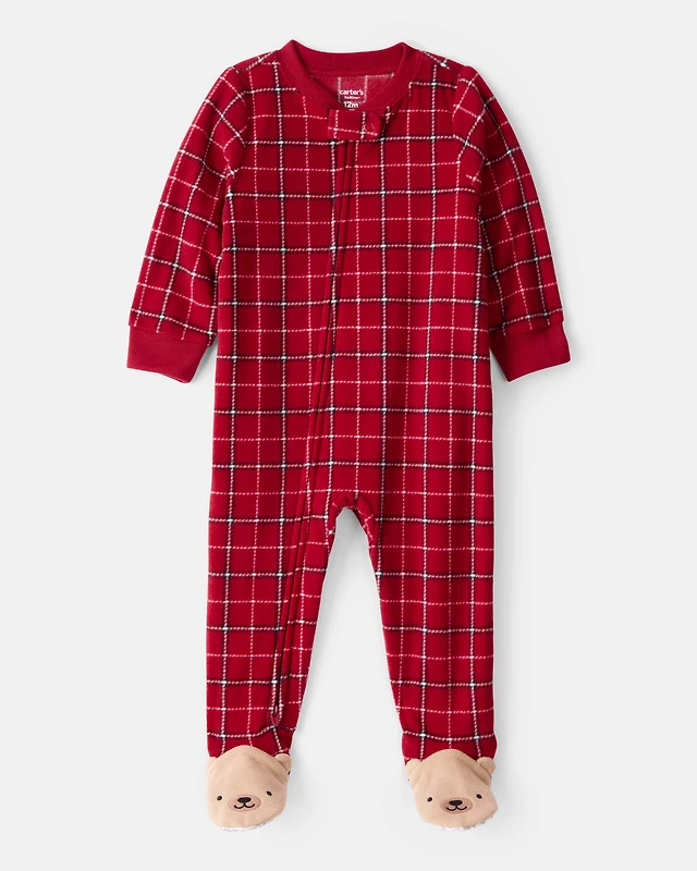 Baby Boy Plaid Print Fleece Loose Fit 1-Piece Pyjamas - Red