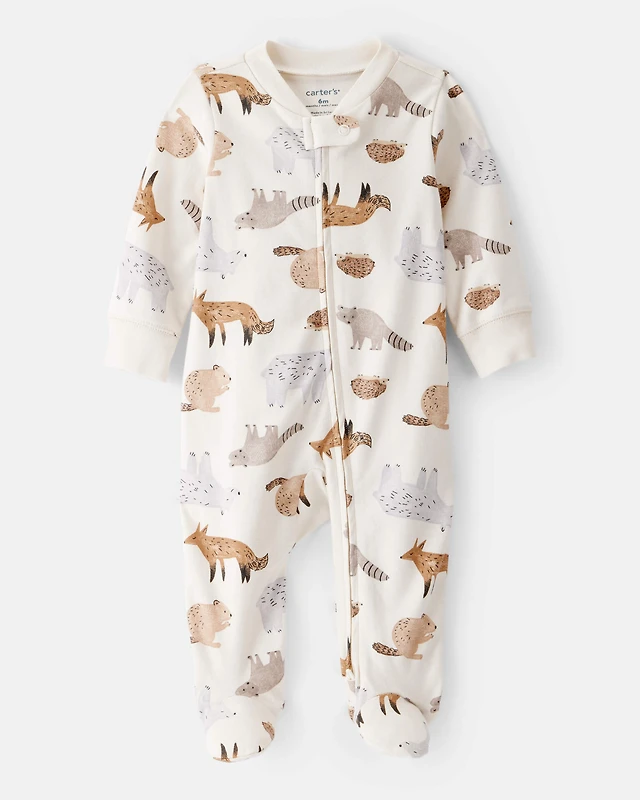 Baby Boy Animal Ski Print Loose Fit Long-Sleeve Sleeper - Cream