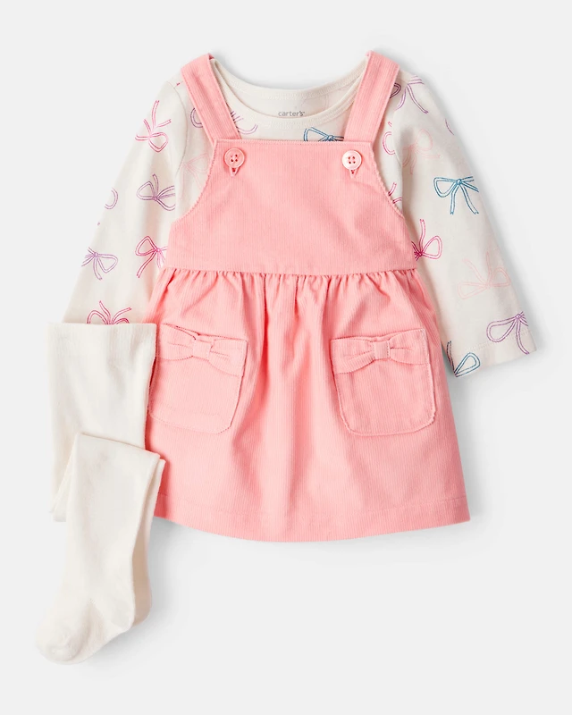 Baby Girl 3-Piece Bow Heart Print Long-Sleeve Dress Set - Orange