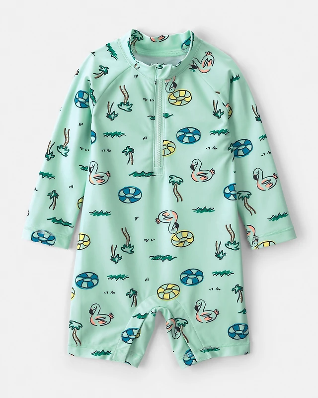 Baby Boy Vacation Long-Sleeve 1-Piece Rashguard Swimsuit - Green