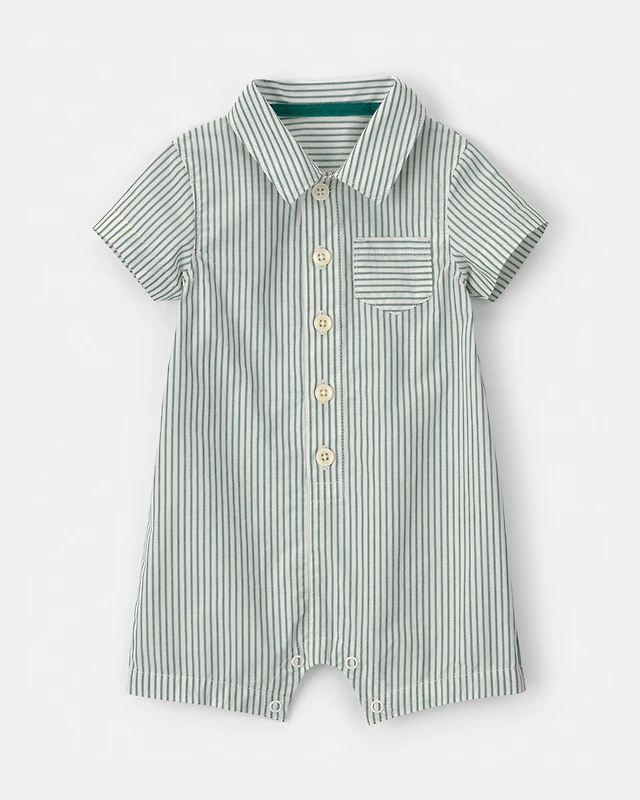 Baby Boy Collared Stripe Short-Sleeve Romper - Green/White