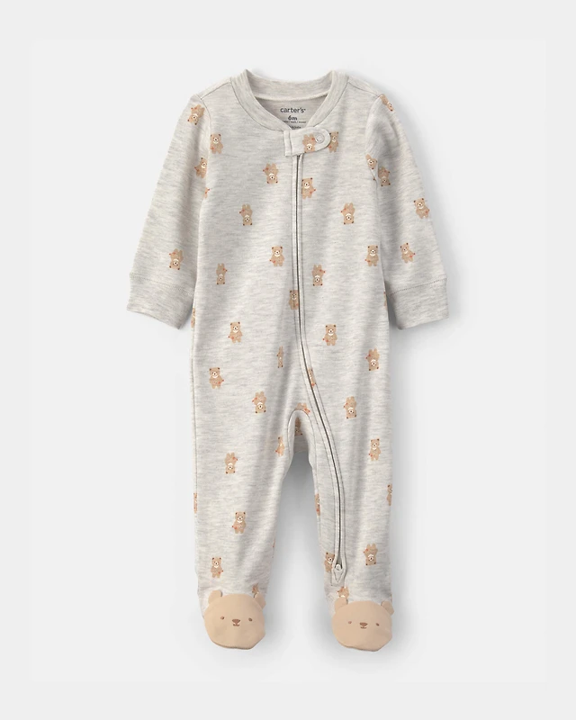 Baby Teddy Bear 2-Way Zip Snug Fit Sleeper - Grey