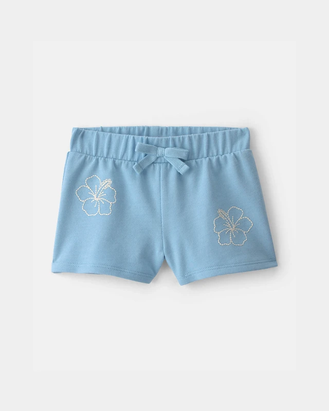 Baby Girl Tropical Flower French Terry Shorts - Blue