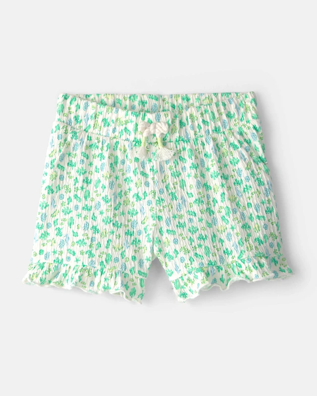 Baby Girl Floral Pull-On Shorts - Green