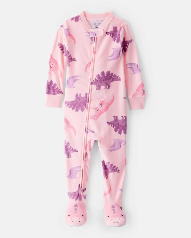 Toddler Girl Dinosaur DreamPlush Snug Fit 2-Way Zip 1-Piece pyjamas - Pink