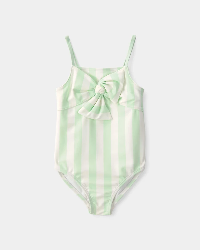 Toddler Girl 1-Piece Striped Swimsuit - Green/Ivory