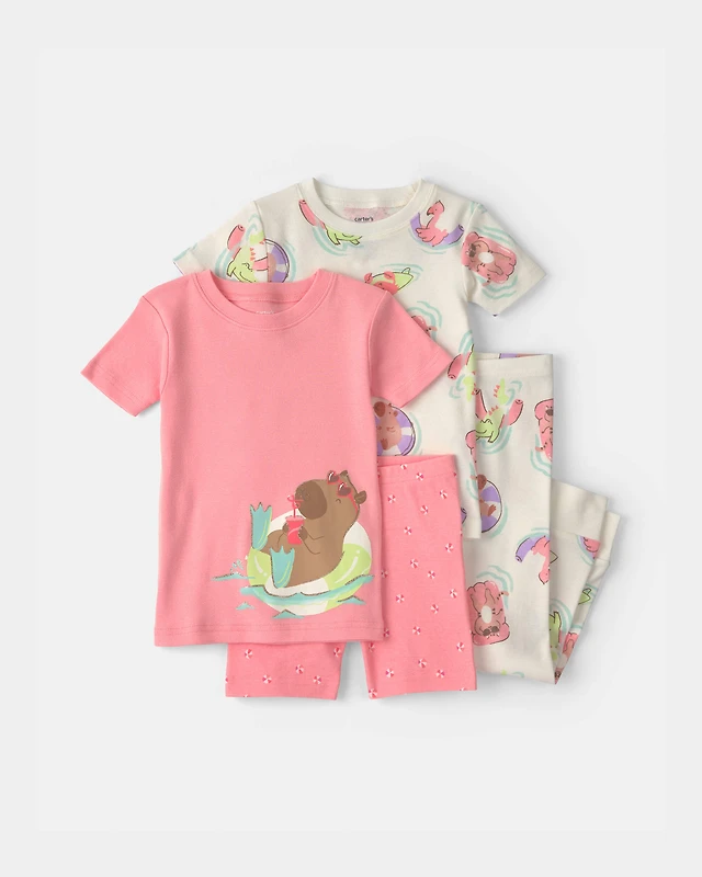 Toddler Girl Pool Party 100% Cotton 4-Piece Pyjama Set - Pink/Ivory