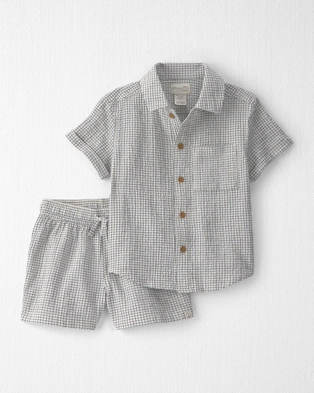 Toddler Boy 2-Piece Organic Cotton Seersucker Gauze Top & Short Set