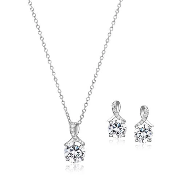 Sterling Silver Cubic Zirconia Earring and Pendant Set