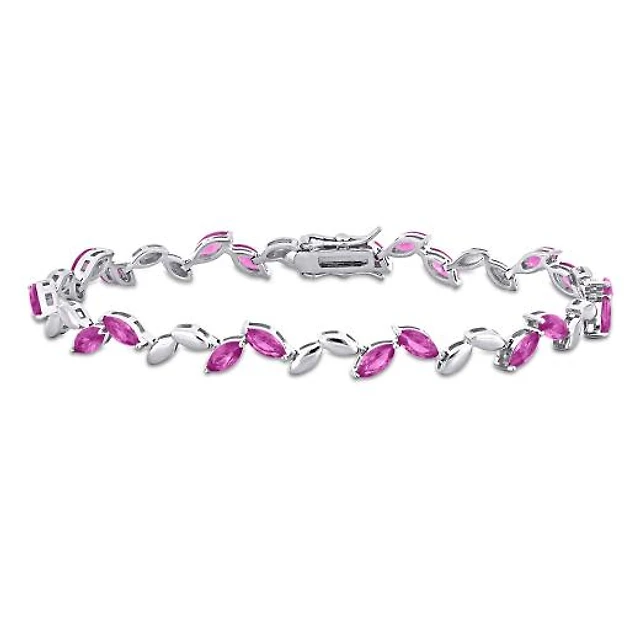 Julianna B Yellow Plated Sterling Silver Created Pink Sapphire Bracelet 7.75