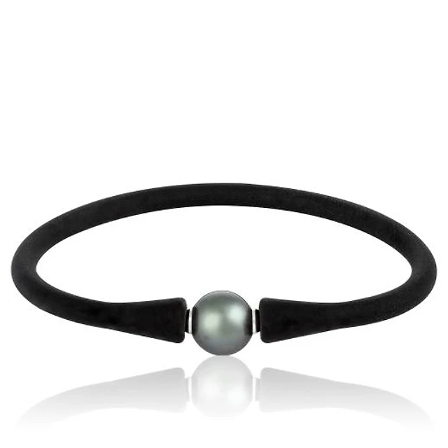 Black Silicone Tahitian Pearl 8" Bracelet