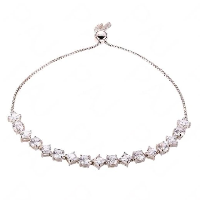 Sterling Silver Cubic Zirconia Bolo Adjustable Bracelet