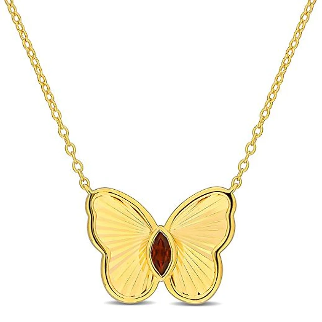Julianna B Yellow Plated Sterling Silver Citrine Butterfly 17" Pendant
