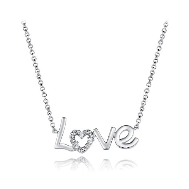 Sterling Silver Cubic Zirconia Love 19" Pendant