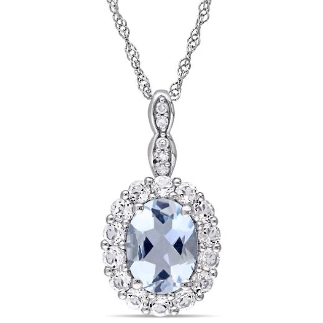 Julianna B 10K White Gold Aquamarine & 0.12CTW Diamond Pendant with Chain