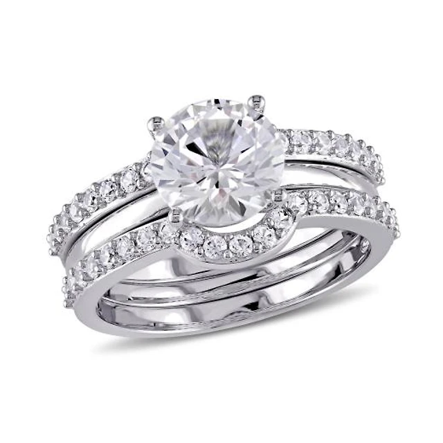 Julianna B Sterling Silver Created White Sapphire Graduated Ring