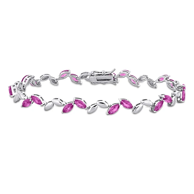 Julianna B Sterling Silver Created Pink Sapphire Bracelet 7.75