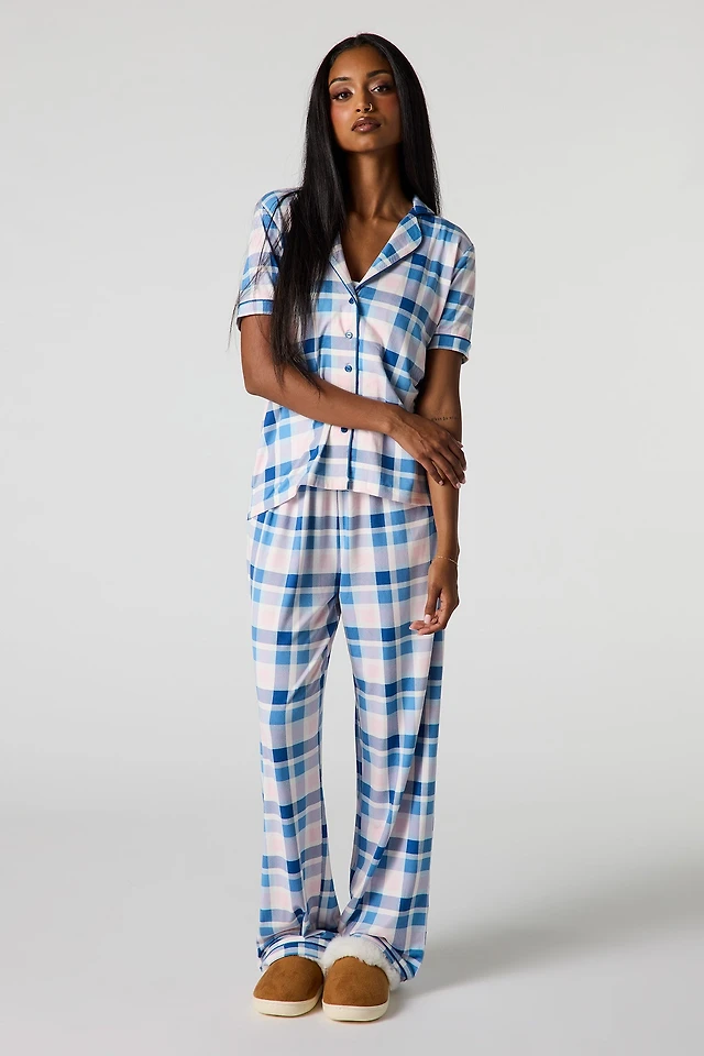 Flannel Button-Up Long Sleeve Top & Pajama Pant