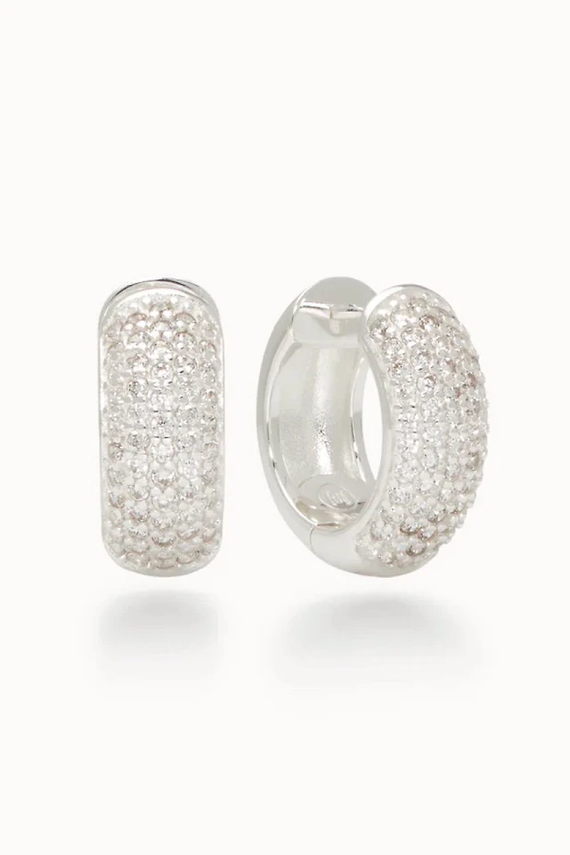 Sparkle Bezel Hoop Earrings - White