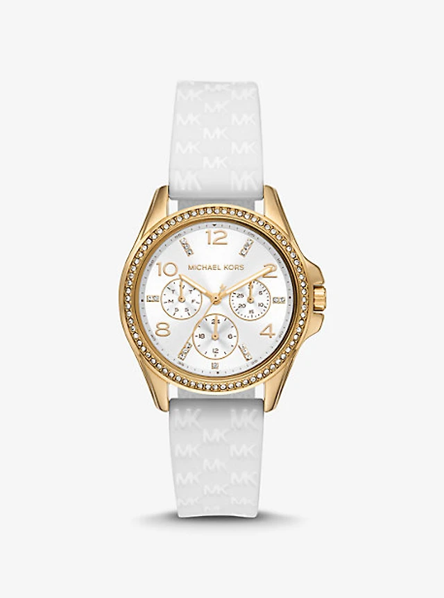 Oversized Slim Everest Pavé Rose-Gold Tone and Embossed Silicone Watch