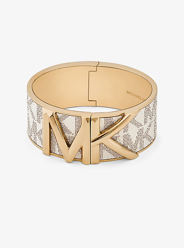 Bracelet en laiton à placage en or rose 14K à logo et à pavé