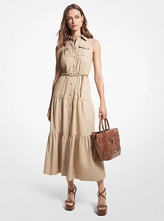 Robe à dos nu mi-longue en linon de coton à chaîne