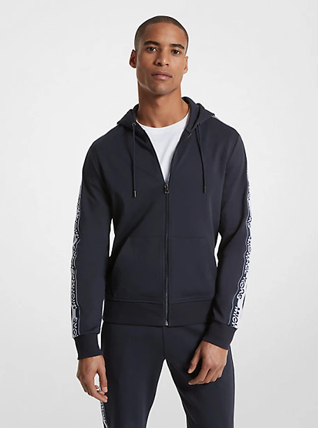 Logo Tape Cotton Blend Zip-Up Hoodie