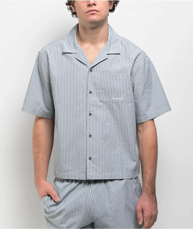 Monet Skateboards Stripe Blue Short Sleeve Button Up Crop Shirt