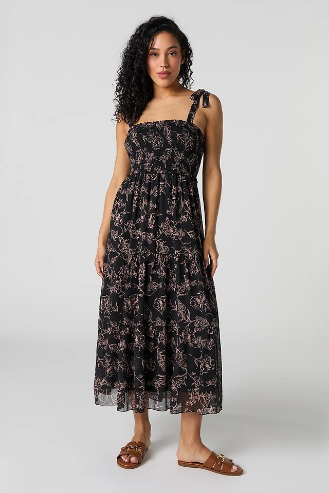 Robe midi en mousseline boutonnée à l'avant avec manche bouffante