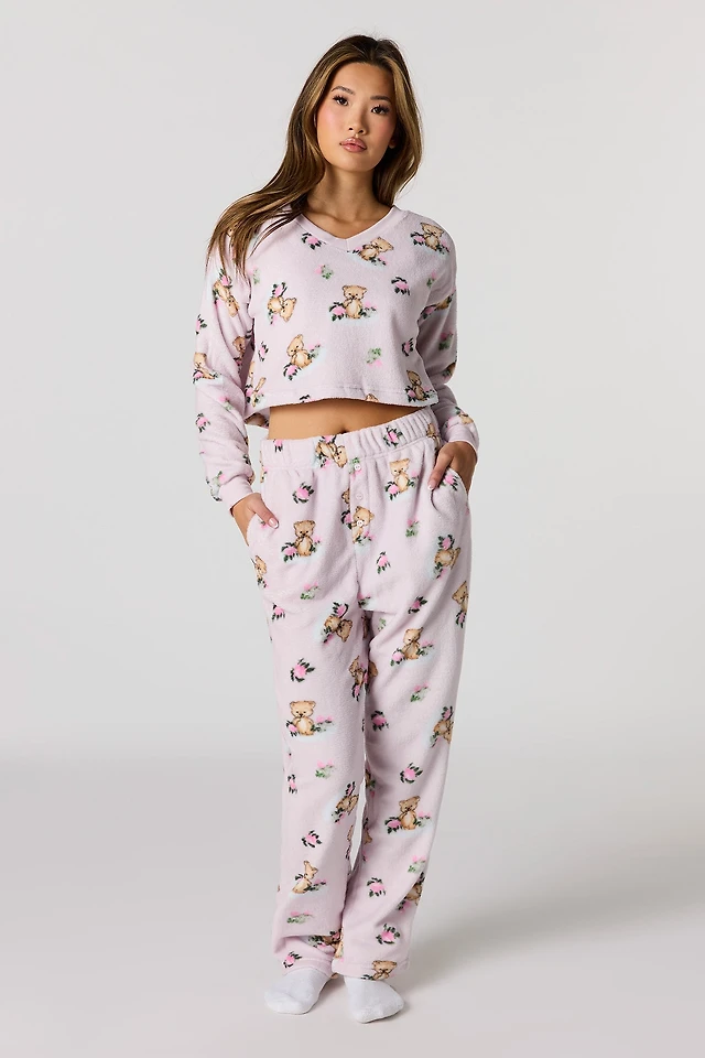 Plush Long Sleeve Top & Pant Pajama Set