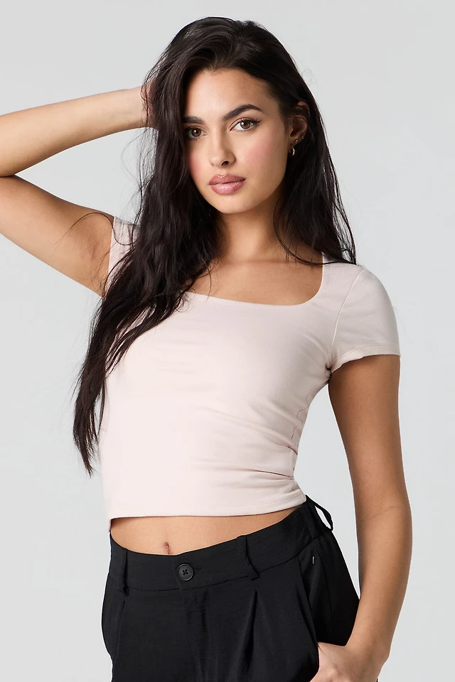 Ribbed Cinched Long Sleeve Top