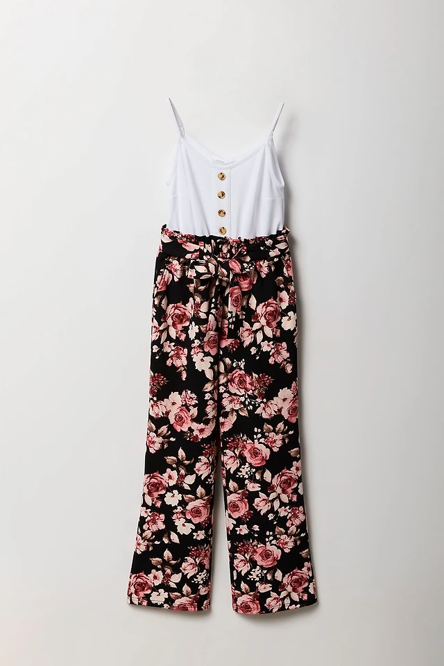 Girls Soft Ribbed Wide Leg Jumpsuit