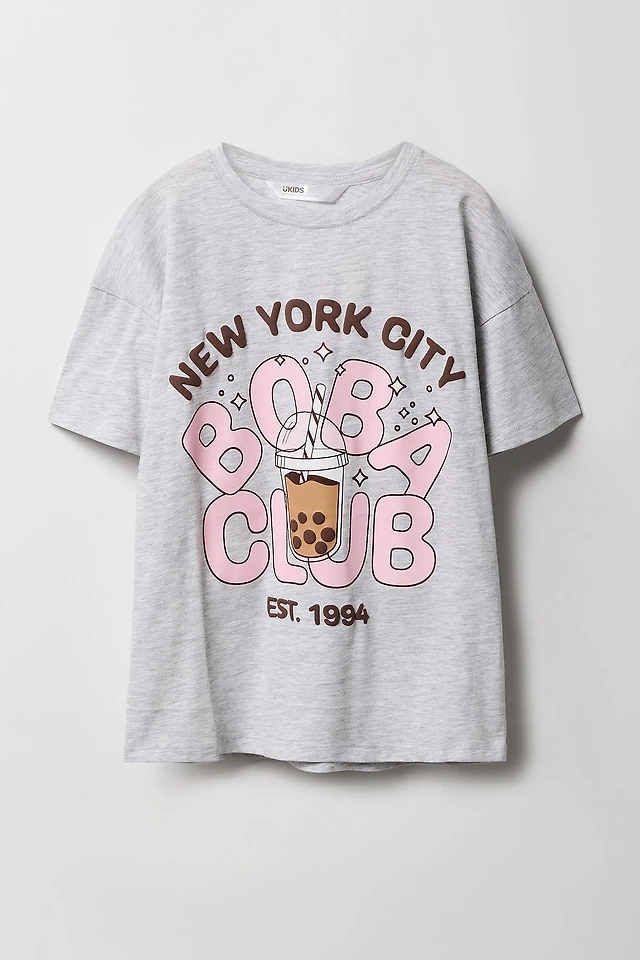Girls Boba Puff Print Oversized T-Shirt