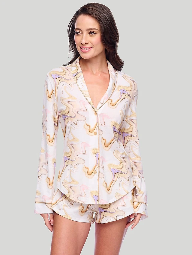 Pima Lusso Long-Sleeve Top & Boxer PJ Set
