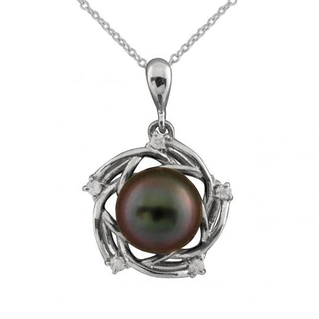 14K White Gold 8mm Tahitian Pearl & Diamond Pendant