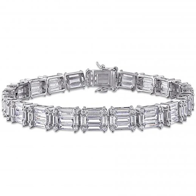 Julianna B Sterling Silver White Cubic Zirconia Oval Tennis Bracelet