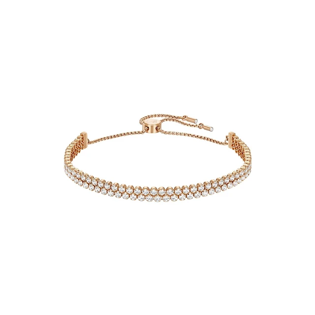 Sterling Silver Rose Plated Glitter Heart Bolo Bracelet