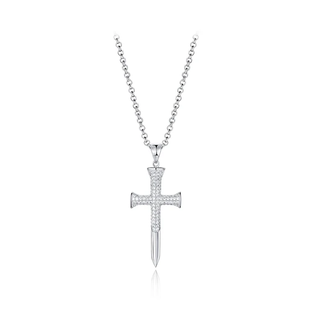 Sterling Silver Men's Cubic Zirconia Cross Pendant On Chain
