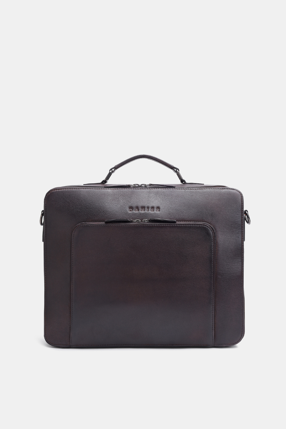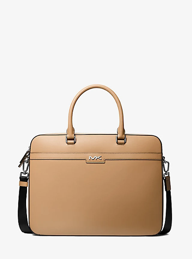 Cooper Textured Faux Leather Double-Gusset Briefcase