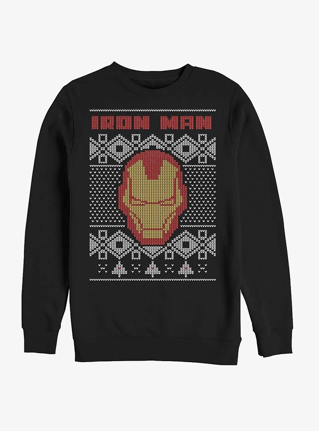 Marvel Iron Man Mask Ugly Christmas Crew Sweatshirt