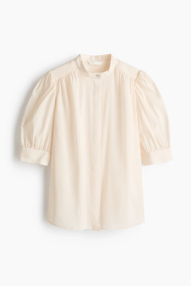 Ruffle-Trimmed Balloon-Sleeved Blouse