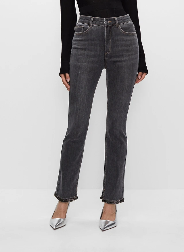Ninth Hall Stacked Flare Grey Denim Jeans