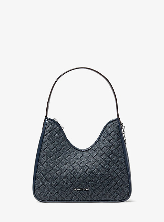 Nayla Small Woven Signature Logo Hobo Shoulder Bag