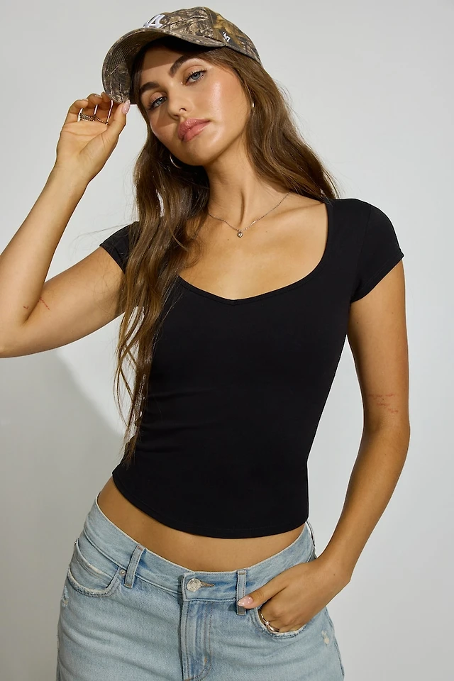 All It Takes Ribbed Nulu V-Neck T-Shirt *B–D Cups